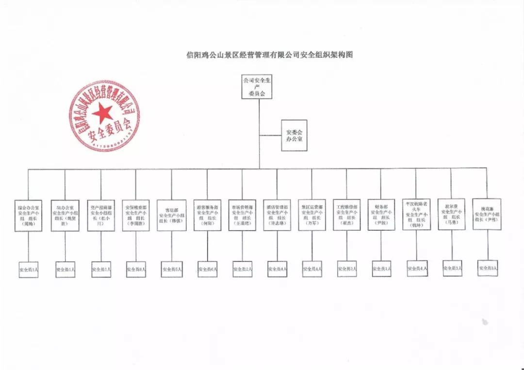 信陽雞公山景區(qū)設(shè)有信陽市公安局雞公山分局,負責(zé)景區(qū)內(nèi)治安、緊急救助及其他安全保護工作。同時,成立了安全管理領(lǐng)導(dǎo)小組,由景區(qū)主要負責(zé)人任組長,對景區(qū)安全實施檢查、督促,全面維護景區(qū)旅游秩序,成立安全委員會,下設(shè)辦公室,辦公室組織結(jié)構(gòu)清晰、人員職責(zé)明確,形成統(tǒng)一協(xié)作,高效運轉(zhuǎn),有條不紊的開展各項工作。