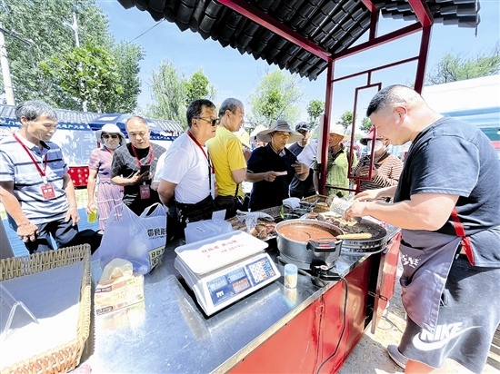 曾登上央視《舌尖上的中國》的陜州十碗席展位前也是人頭攢動。“十碗席包括扣碗肉、小酥肉、辣豆腐、燉土雞、雜燴菜、黃花菜、海帶絲、小豆芽、拌芹菜、拌粉條,一共是七熱三涼。十碗水席,寓意著十全十美,要是再配上剛出鍋的大白面饅頭、香酥可口的麻花,那才叫地道正宗。”已年逾古稀的傳承人趙長省向游客介紹著陜州十碗席的品類和吃法,獲得前來品嘗購買的游客一致好評。