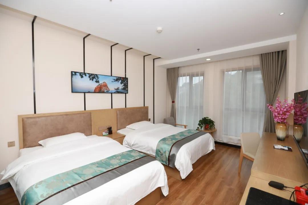 酒店設(shè)有豪華客房、主題親子房以及豪華觀景套房、觀景標(biāo)準(zhǔn)間等不同風(fēng)格、不同檔次的房間54間(套房5間,標(biāo)間48間,親子房1間)其中親子房為兒童主題房,富有童趣,十分適合帶孩子居住?头?jī)?nèi)設(shè)施齊全高檔,裝修時(shí)尚、新潮,格調(diào)溫馨怡人。所有房間均配備液晶數(shù)字電視、無(wú)線網(wǎng)絡(luò)、中央空調(diào)、地暖和頂級(jí)衛(wèi)浴等設(shè)備。人性化的空間規(guī)劃與設(shè)計(jì),讓人倍感溫馨舒適,會(huì)帶給您“家”的感覺。酒店同時(shí)設(shè)有會(huì)議室(200人左右),可根據(jù)會(huì)議類型的需求提供各式會(huì)議的接待。