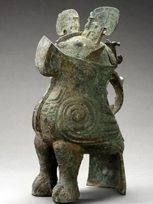 這件四足觥牛、鸮合一的造型充滿想象的張力,瑰偉奇麗,是古代青銅器中組合型動物的典型代表。