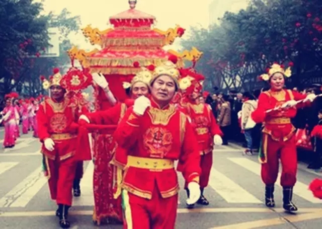 抬花轎、放鞭炮、貼對聯