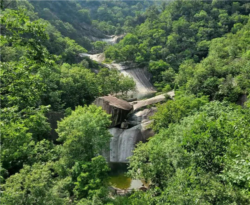 龍?zhí)稖暇皡^(qū)自然落差近千米,整個山體猶如兩條巨龍盤踞,分別顯現(xiàn)龍首、龍口、龍角和龍身,兩山相夾的峽谷自下而上形成梯式瀑布共19個,大小潭穴72處,一瀑一潭景色壯觀,落差最高的瀑布約35米 ,最低的也有15米,最為著名的“四連瀑”四瀑相連,逶迤蛇行,夏秋旺水季節(jié),峽谷內(nèi)銀練直掛,碧花橫飛,云蒸霞蔚,令人叫絕。