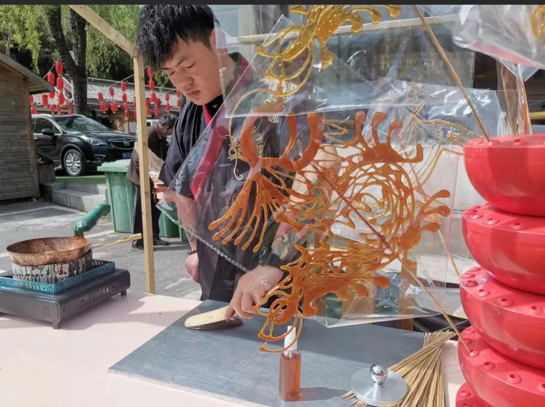 非遺項(xiàng)目一共設(shè)置7個(gè)演出點(diǎn),不間斷上演56場非遺表演,包含非遺表演、非遺美食、非遺文創(chuàng)、非遺市集、非遺民宿、非遺工坊、非遺研學(xué)、非遺夜游等8大版塊,表演項(xiàng)目包括河洛大鼓、河南墜子、非遺飛叉、剪紙、糖畫、糖人、古彩戲法、通天繩、蹬鼓等。讓非遺看得見、摸得著、體驗(yàn)得到。