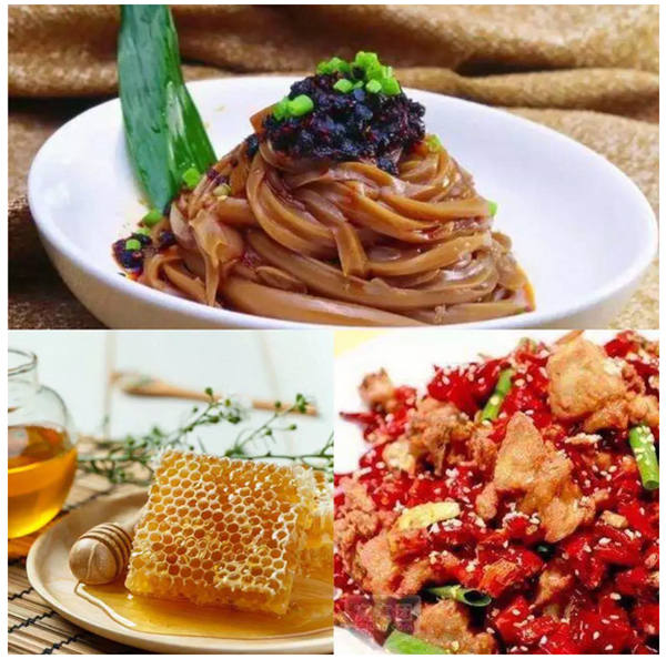 浮戲山橡子涼粉、麻辣魚片、金銀花、農(nóng)家自制蜂蜜、山里的各種野菜也是可遇而不可求。