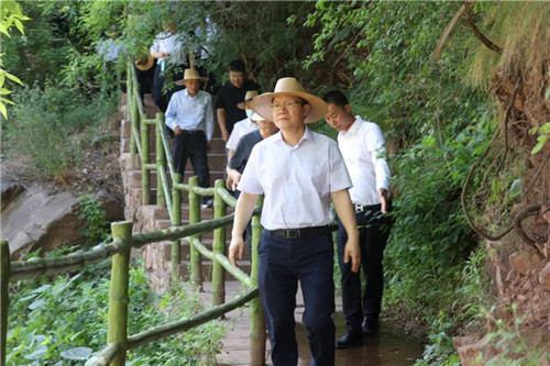 在情侶谷,李建民向景區(qū)工作人員了解和詢問(wèn)了景區(qū)植被覆蓋率和負(fù)氧離子含量、景區(qū)植被和地質(zhì)構(gòu)造等詳細(xì)情況。