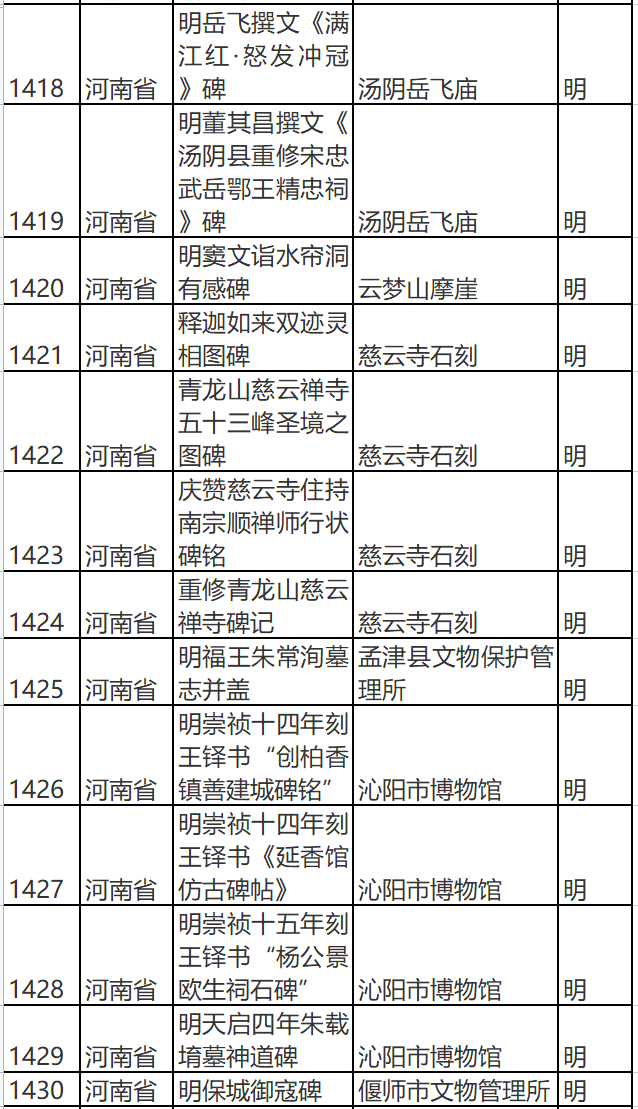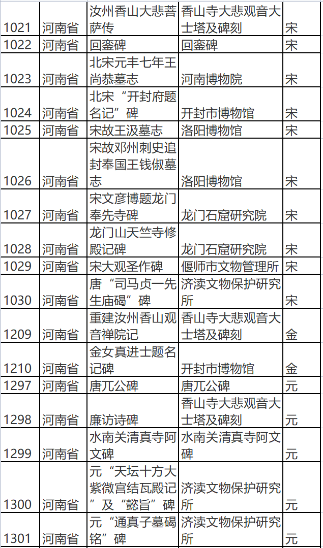7月14日,國家文物局印發(fā)《第一批古代名碑名刻文物名錄》,河南共有145處文物上榜,包括龍門石窟、少室闕、太室闕等,涵蓋東漢、三國、西晉、南北朝、唐、五代十國、宋、金、元、明、清等多個朝代。