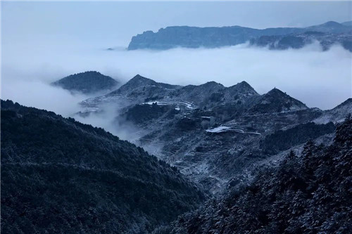 我們?cè)谔写髰{谷等雪,卻等來了“一場(chǎng)雨”,經(jīng)過一場(chǎng)小雨的洗禮,太行大峽谷開始云霧蒸騰,呈現(xiàn)云海奇觀。
