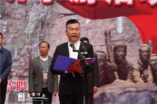 10時許,安陽市委書記李公樂、“漢字叔叔”理查德·西爾斯、中央電視臺知名主播張澤群、香港仁濟醫(yī)院創(chuàng)會主席王子沐共同在長卷上按下一方紅紅的中國印,于方寸之間展現(xiàn)文化大乾坤。“歲在丁酉,時維春陽。壯兮吾華,寰球大邦,文明悠久,肇始殷商……”“紅旗渠畔甲骨情”的頌詞嘹亮響徹山谷之間。由此,“紅旗渠畔甲骨情”大型宣傳活動正式拉開序幕。