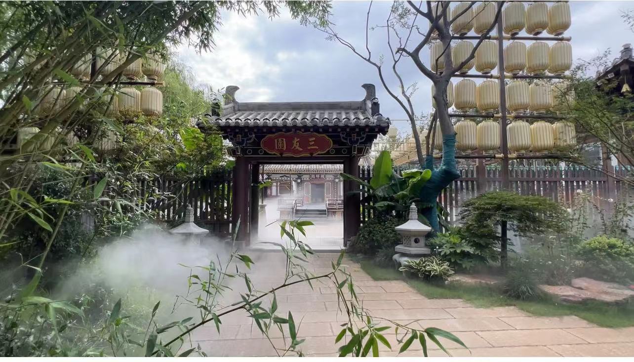 據(jù)了解,《歸鄉(xiāng)》目前只在三友園內(nèi)演出。三友園因杜甫三位最重要的朋友李白、高適和岑參而得名,園內(nèi)借鑒中國(guó)園林美學(xué)觀念,融入唐代家宅園林元素,既是景觀又是舞臺(tái)。