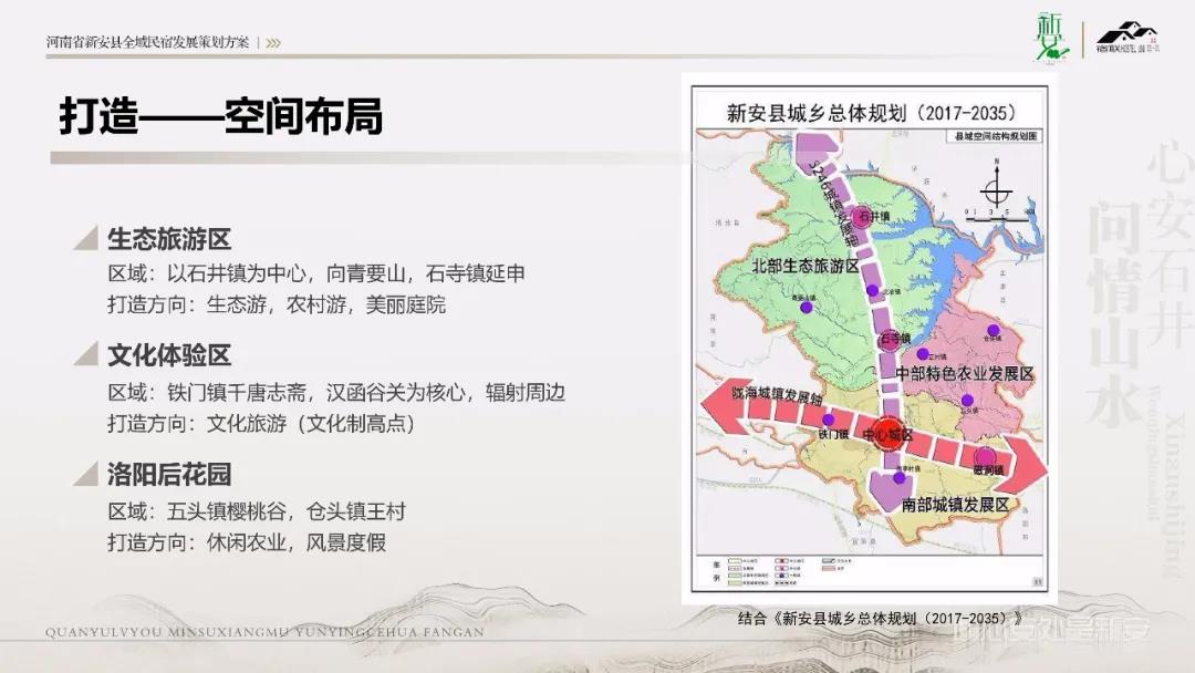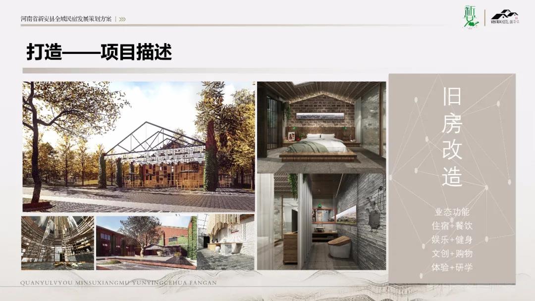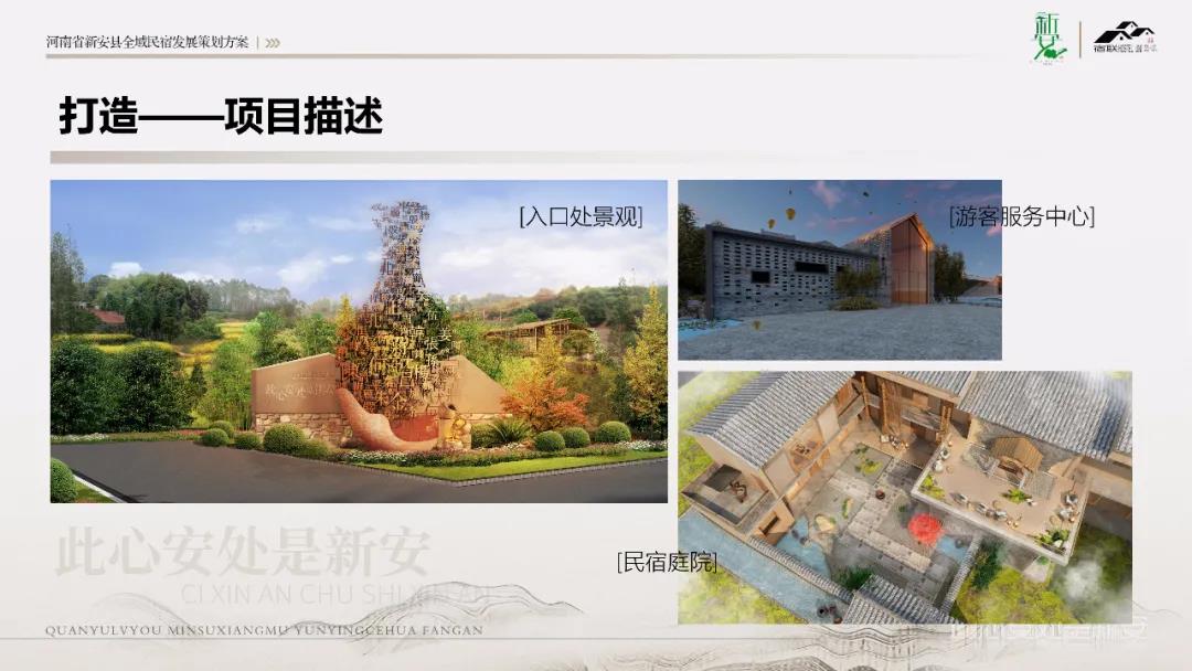 凌總結(jié)合當(dāng)前政策定位、市場趨勢及客群市場對新安縣民宿策劃方向進行詳細解說,本著“生態(tài)環(huán)保”、“舒適宜居”的開發(fā)邏輯,整合出生態(tài)旅游區(qū)、文化體驗區(qū)、洛陽后花園三大空間布局,打造具有“吃住行游購娛康養(yǎng)學(xué)”九大功能的微度假綜合體,呈現(xiàn)四季繽紛、品質(zhì)休閑、美宿生活的效果;最后就產(chǎn)品打造及運營進行專業(yè)介紹,分別從運營策劃、運營路徑、打造體系等具體執(zhí)行方面給予闡述。