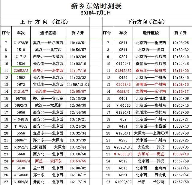 本次調(diào)圖,新鄉(xiāng)東站?靠蛙82趟,較之前增加了7趟。特點是增加了往返濟(jì)南以及青島返程的高鐵,車次分別為G2052/3次西安北至濟(jì)南西、G2058/5次濟(jì)南西至廣州南、G1842/39次青島北至鄭州東。經(jīng)本次調(diào)圖,新鄉(xiāng)市將首次增加濟(jì)南方向的往返高鐵。
