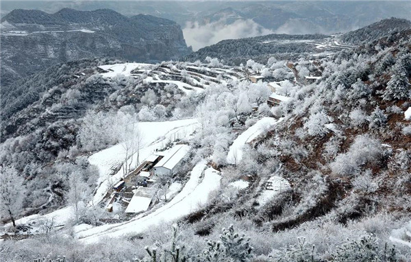 近日,太行山喜降瑞雪,將巍巍的太行山瞬間披上了銀裝,駕車(chē)順著崎嶇的山路盤(pán)旋而上,道路兩邊的樹(shù)枝上掛滿(mǎn)了潔白晶瑩的霜花,山風(fēng)吹拂銀絲閃爍,天地白茫茫一片,猶如被塵世遺忘的仙境。