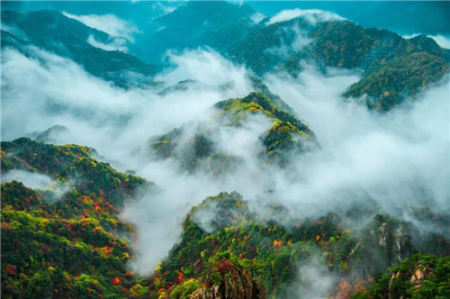 位于豫西伏牛山腹地,欒川向來四季分明,這里山林密布,進入10月往后,氣溫持續(xù)下降讓層層山巒次第披上多彩的外衣,呈現(xiàn)從淺綠到深紅的漸變色。