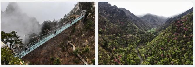 路線1:索道上站——迎客松——伏牛山神——西天取經(jīng)——玻璃吊橋——1830云頂咖啡——分水嶺