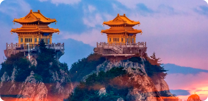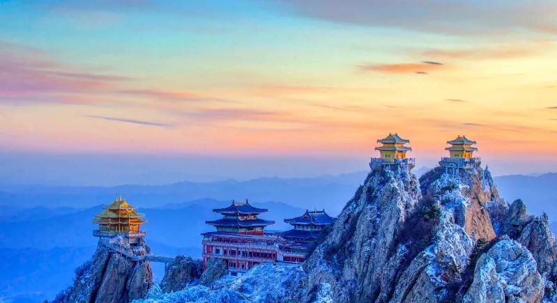 朝陽(yáng)升起,金頂伴著朝霞,構(gòu)成一幅絢麗壯美的畫(huà)卷。山頂?shù)鸟R鬃嶺、金殿、玉皇頂、亮寶臺(tái)、夷希廊等地,皆是老君山觀(guān)日出的絕佳之處!
