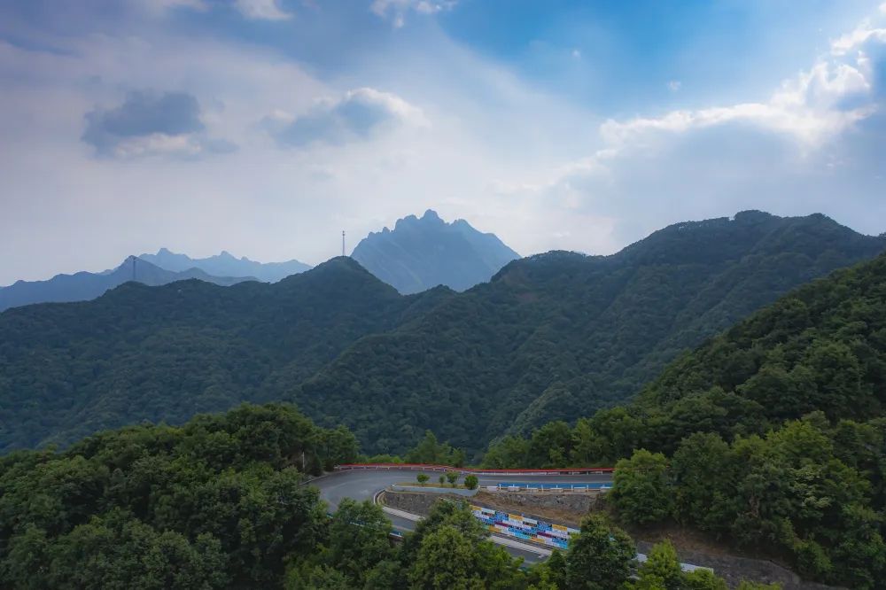 白云天路全長18公里,以銅河村為起點,一直通達(dá)洛陽白云山景區(qū),山路蜿蜒于海拔900~1950米的山腰之間,全程共計318道彎,名副其實的中原“秋名山賽道”。這條公路如玉帶般,盤繞在崇山峻嶺間,被美景擁抱,沿途綠色畫廊非常養(yǎng)眼,領(lǐng)略伏牛山脈獨特的風(fēng)光。對于喜歡自駕、騎行的人來說,白云天路無疑是令人心神向往的詩和遠(yuǎn)方。