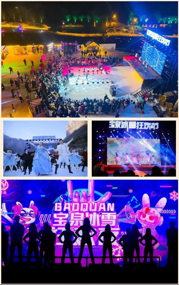 冬天的精彩本就短暫,絢爛的燈光下,煙霧從兩邊散開,劇情童話演出、男團女團熱舞表演……誰能拒絕這冰雪舞臺上的浪漫呢?