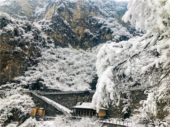 驚艷一瞥的十里畫廊,在雪的點(diǎn)綴下更顯多姿~山舞銀蛇,千里冰封,掩不住,歲月凝結(jié)的厚重滄桑。