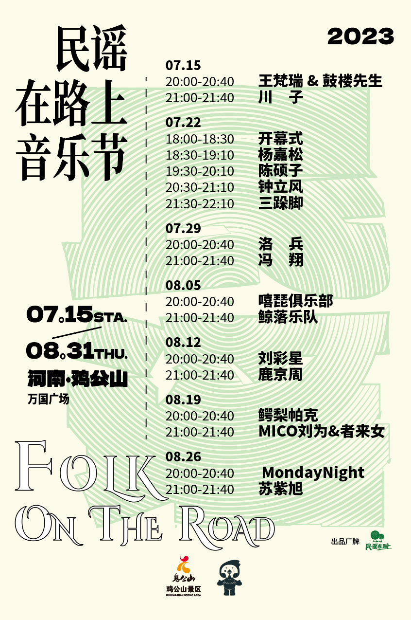 7.22日晚,2023雞公山清涼文化月暨大別山(信陽)文化旅游季在國家5A級旅游風景區(qū)——雞公山景區(qū)正式拉開帷幕。來自中國民謠屆的著名音樂人楊沁松、三跺腳樂隊、鐘立風、陳碩子帶著他們的經(jīng)典作品傾情獻唱。