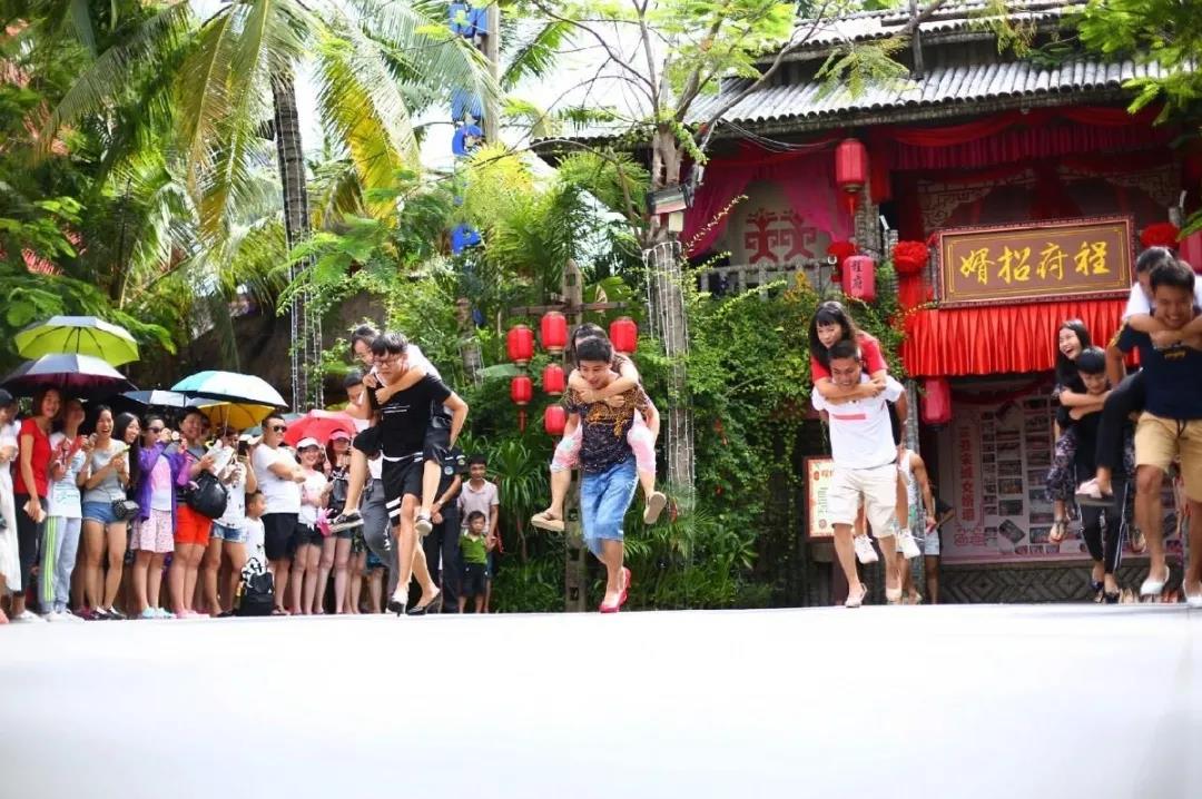 背著女伴跑40米,跑完全程就有奇妙好禮送給女伴,每天第一名還可獲得網(wǎng)紅民宿——烏篷雅居1晚。