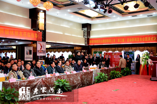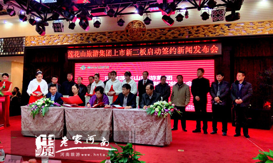 1月23日下午3點,蓮花山旅游集團新三板上市啟動簽約儀式暨新聞發(fā)布會在鄭州泰宏陽光大廈陽光會堂隆重舉行。河南省原省委常委、政法委書記張世軍,河南省政府原副省長李志斌,河南省外辦原主任、省旅游局原局長蔡流海,常香玉基金會理事長常如玉,豫西商會執(zhí)行會長兼秘書長楊壽亭,中原證券直投公司-中鼎開源創(chuàng)業(yè)投資管理有限公司董事長房建民,中原證券股份有限公司副總程紅玲,原梨園春藝術團團長、香玉劇社理事長馬宏建,嵩縣人民政府副縣長毛安福、嵩縣旅游局局長段喜波,荷銀資本總裁溫二峰等領導出席啟動儀式,簽約機構、個人以及中新社、人民網(wǎng)、河南日報、河南電視臺等30余家知名媒體代表共計600余人見證了此次盛會。