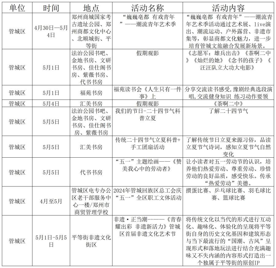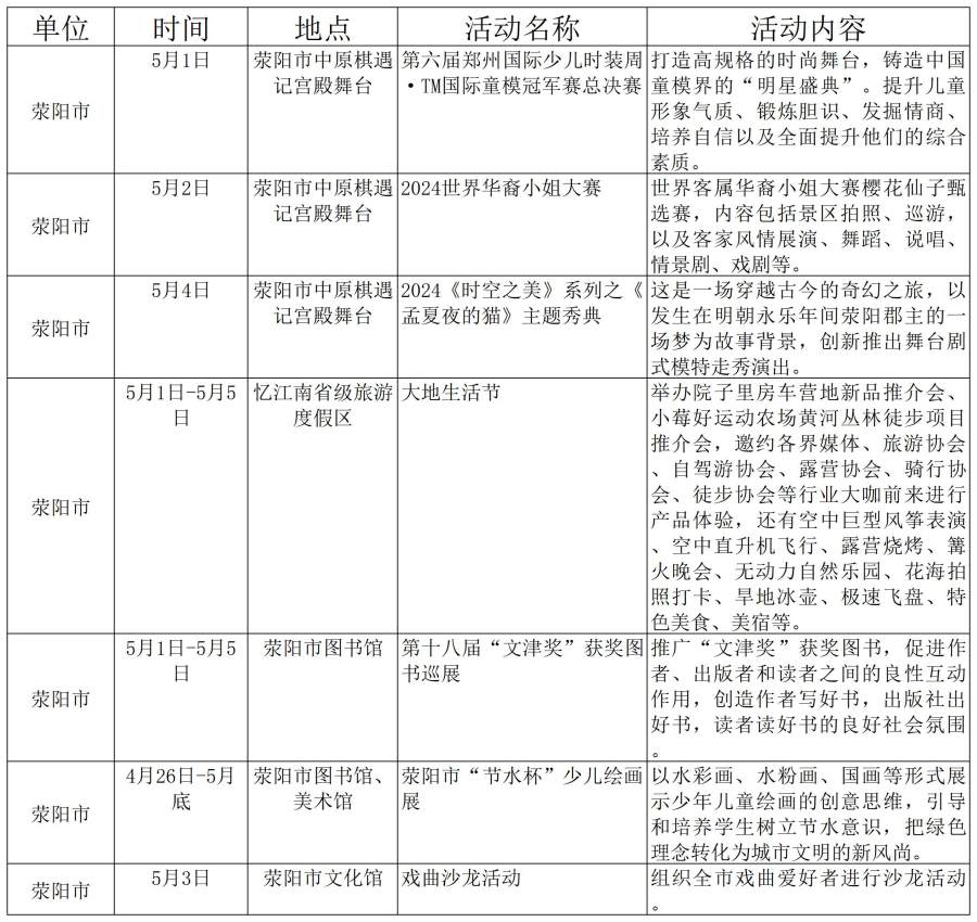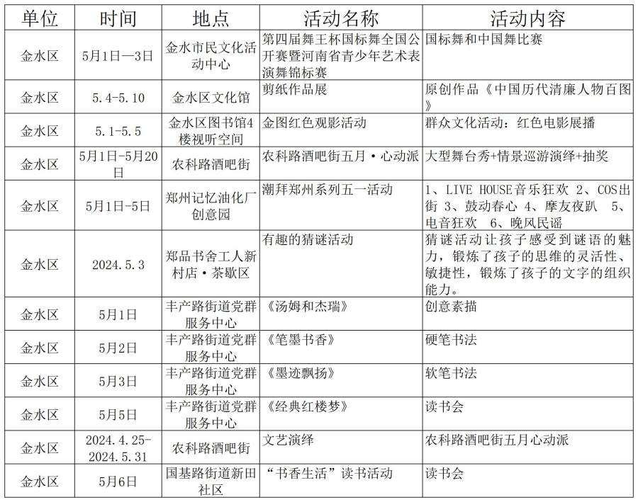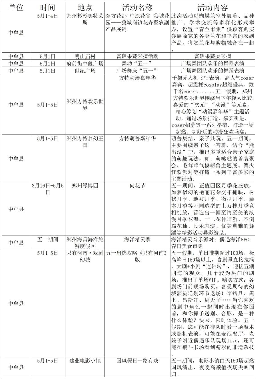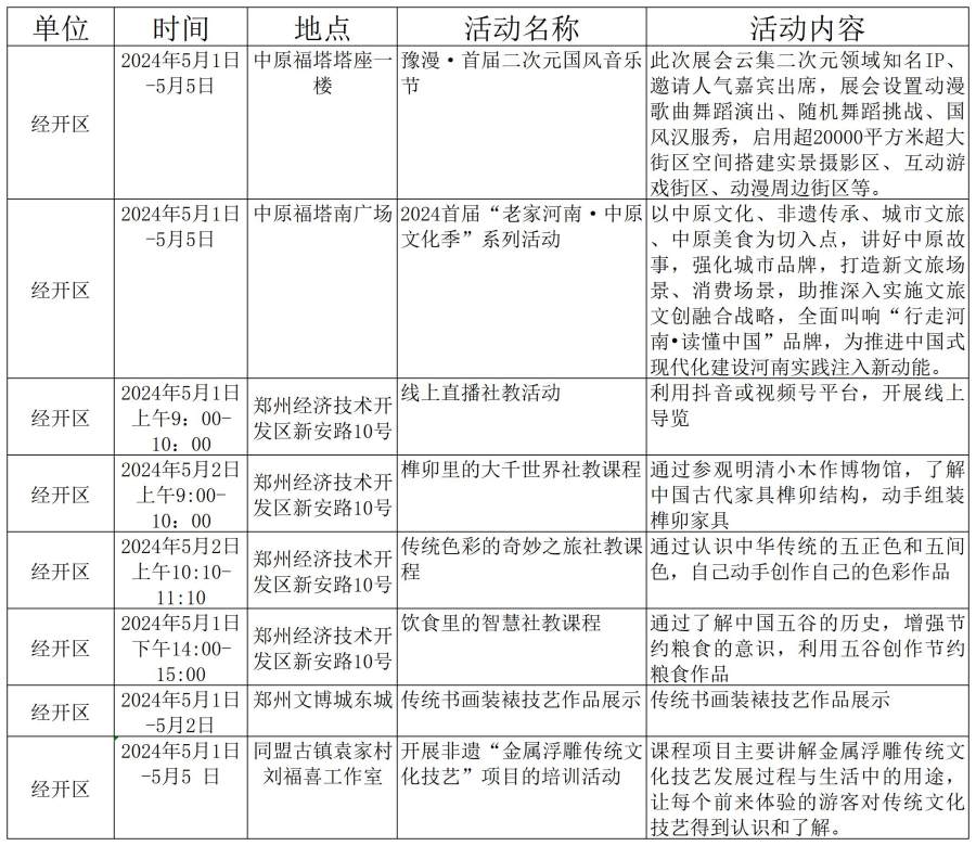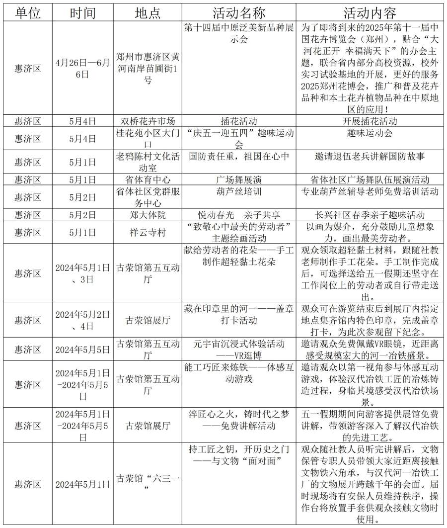 鄭州市“五一”期間文旅活動