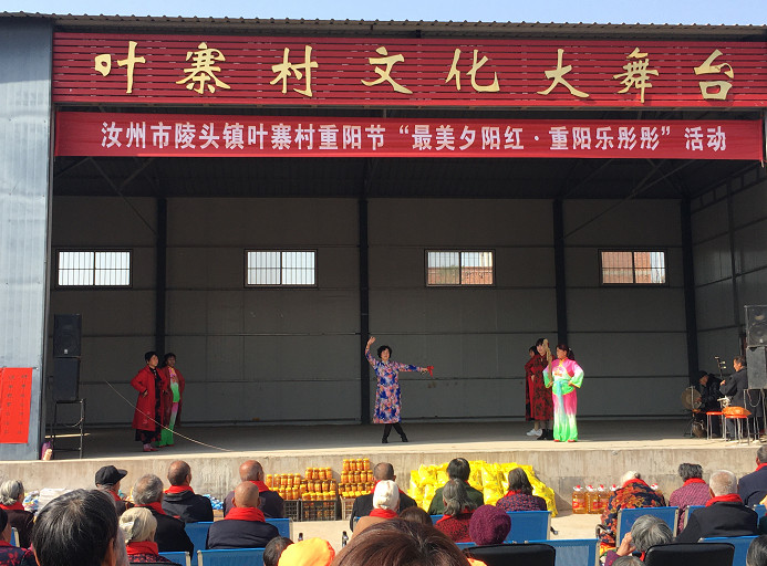 金秋十月,又將迎來了老人們的傳統(tǒng)節(jié)日——“九九”重陽節(jié)。為大力弘揚(yáng)中華民族尊老敬老的傳統(tǒng)美德,進(jìn)一步倡導(dǎo)敬老、愛老、助老的新風(fēng)尚,讓高齡老人度過一個(gè)溫馨愉快的重陽節(jié),10月23日上午,汝州市陵頭鎮(zhèn)葉寨村在汝州市文旅局的指導(dǎo)下,舉辦“最美夕陽紅·重陽樂彤彤”慶祝重陽節(jié)活動(dòng),把村里50位80歲以上的老人都請(qǐng)到葉寨村大舞臺(tái)歡度“老人節(jié)”,讓葉寨村人不僅要脫貧致富奔小康社會(huì),更要“倉廩實(shí)而知禮節(jié),衣食足而識(shí)榮辱”。