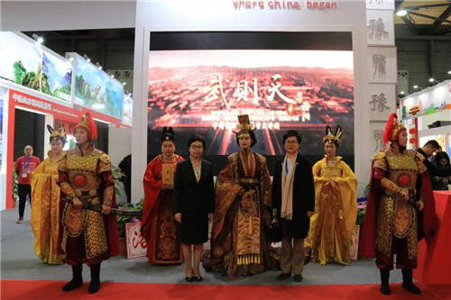 河南展館洛陽(yáng)展位前圍滿了熙熙攘攘的人群,原來(lái)女皇武則天身著華服“穿越時(shí)空”親臨河南省洛陽(yáng)展館,引來(lái)眾多海內(nèi)外旅行商紛紛合影,這是來(lái)自洛陽(yáng)大型實(shí)景演出《武則天》的演出團(tuán)隊(duì),現(xiàn)場(chǎng)為中外游客以及旅行商再現(xiàn)大唐璀璨文化,千年帝都輝煌!