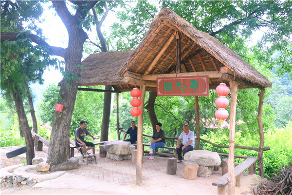 村民在亭子下聊天 胡耀華 攝