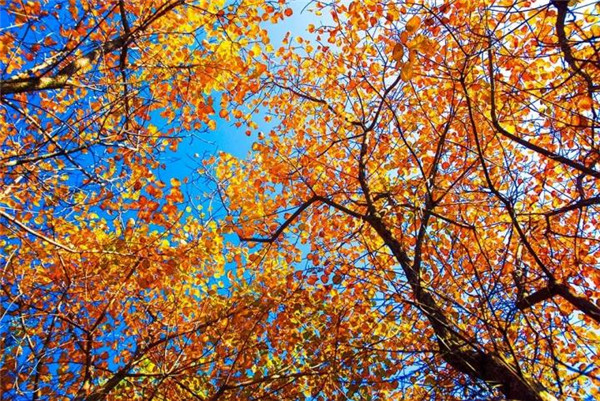 滿樹的金黃在藍天的映襯下更顯可愛迷人,唯美的畫面讓人眷戀。
