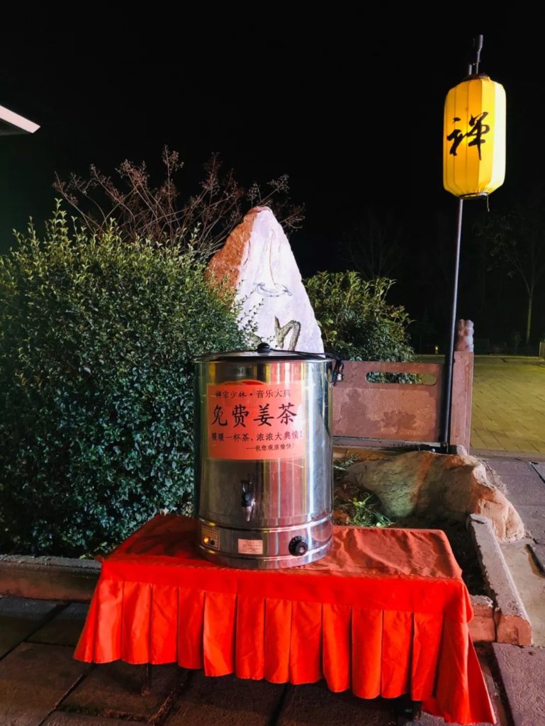 每每進(jìn)入冬季,音樂大典都會在入場口的廣場上備一桶暖暖的姜茶,免費(fèi)供游客取用。“暖暖一杯茶,濃濃大典情”,希望每一位前來觀演的朋友不僅能看到精彩震撼的演出,也能感受到我們大典人的熱情和溫暖!