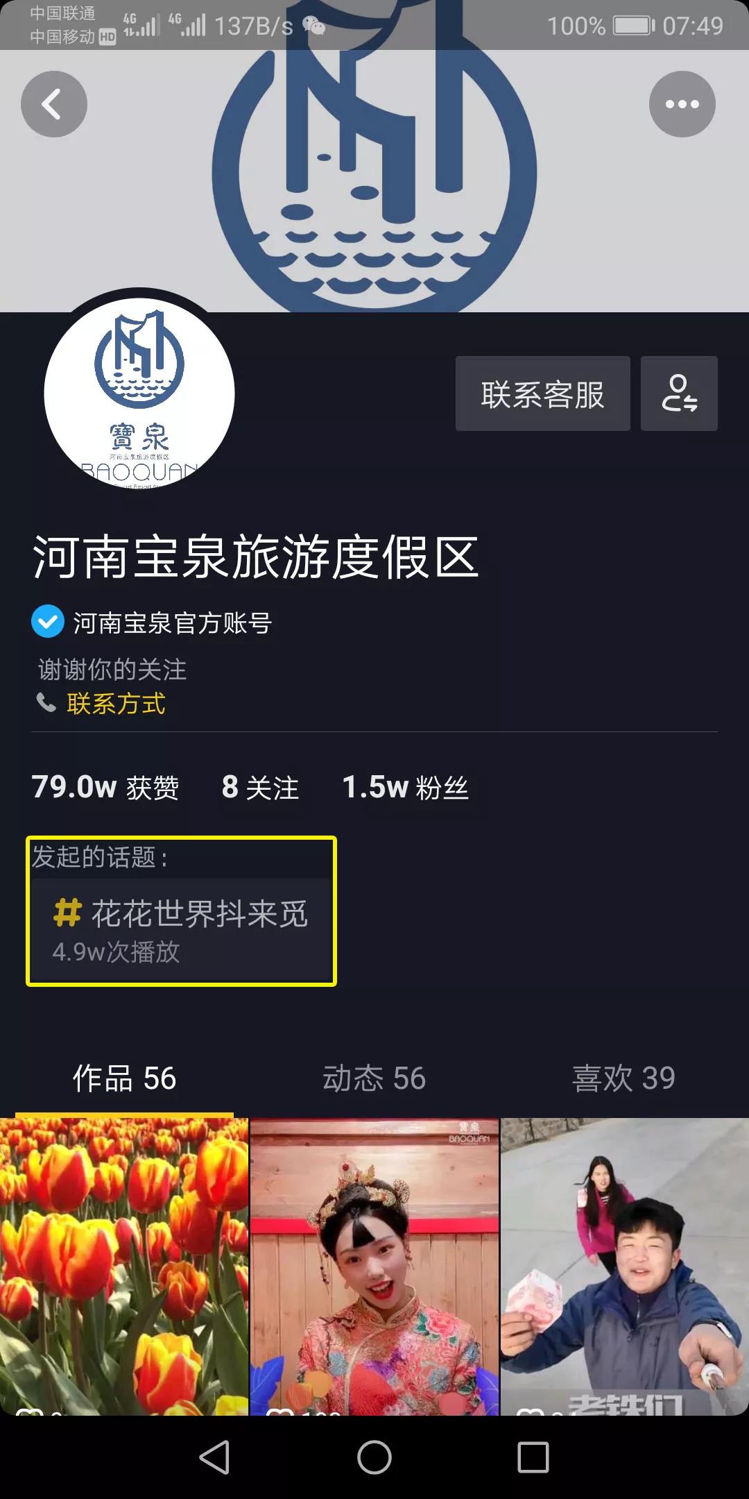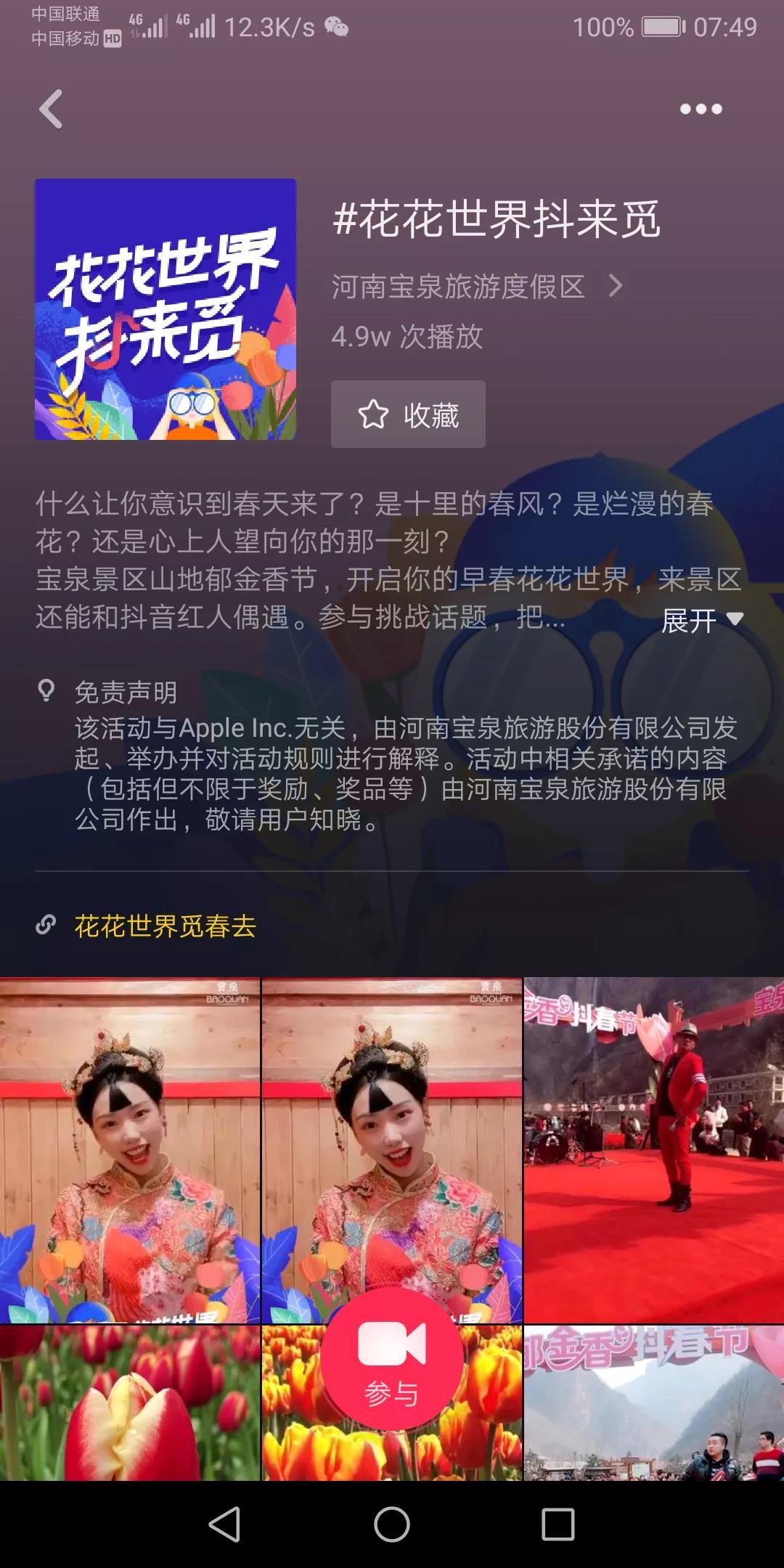 搜索抖音號:河南寶泉旅游度假區(qū)(或搜索:baoquan666),點擊話題#花花世界抖來覓,參與活動。