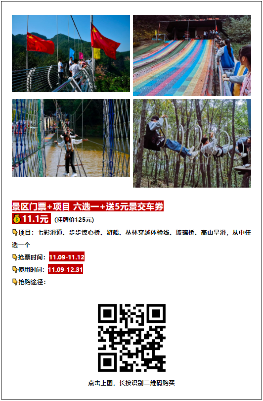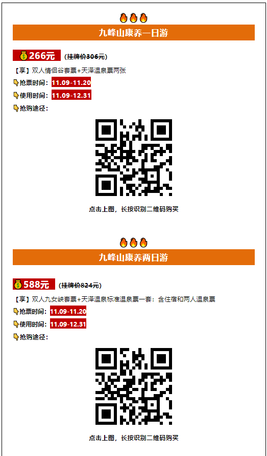 截至11月10日,免票活動(dòng)圓滿結(jié)束! 但是, 【九峰山雙11年終鉅惠來(lái)嘍】