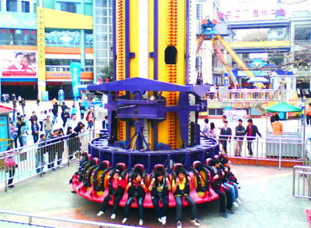 在歡笑天地,十指緊扣、縱情尖叫,一起挑戰(zhàn)數(shù)十種驚險(xiǎn)刺激的機(jī)動(dòng)游樂設(shè)備,把壓力苦累拋上九霄云外。這里的旋轉(zhuǎn)式過山車,打造“公轉(zhuǎn)+自轉(zhuǎn)”的動(dòng)感體驗(yàn),感受宇宙運(yùn)行、斗轉(zhuǎn)星移的神秘規(guī)則。跳樓機(jī)垂直高度達(dá)60米,從這樣一個(gè)恐怖的高度墜落到底,只要不到兩秒的時(shí)間。每個(gè)人心中都有一個(gè)漢姆雷特,每個(gè)游樂場(chǎng)都有一座大擺錘。歡笑天地的大擺錘以充分合理地利用各種作用力著稱,乘坐者可以清晰地感受到慣性、離心力和地心引力等各種作用力,被它們猛烈地拉扯,但又被機(jī)器安全地保護(hù),這種極度充滿張力的矛盾感覺一波又一波地刺激著你的身體和思想,仿佛一場(chǎng)迅猛爆裂的“極速風(fēng)暴”。