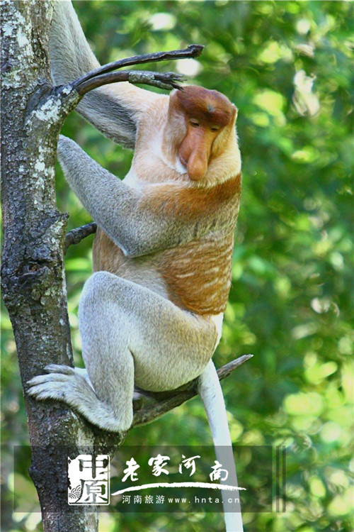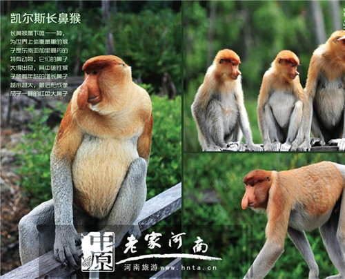 它們的鼻子大得出奇,其中雄性猴子隨著年齡的增長(zhǎng)鼻子越來(lái)越大,最后形成像茄子一樣的紅色大鼻子,激動(dòng)的時(shí)候,大鼻子就會(huì)向上挺立或上下?lián)u晃,而雌性的鼻子卻比較正常。