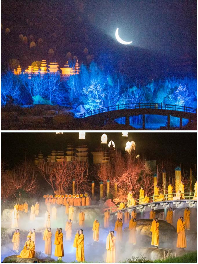 節(jié)目表演方面,在保持原有核心章節(jié)和內(nèi)容不變的基礎(chǔ)上,創(chuàng)新了表演形式和方法,還是之前的五大樂章《水樂·禪境》《木樂·禪定》《風(fēng)樂·禪武》《光樂·禪悟》《石樂·禪頌》,經(jīng)過創(chuàng)新與效果提升后,又有不同的感受和領(lǐng)悟。