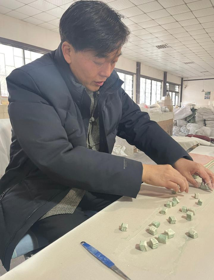 非遺代表性傳承人柴戰(zhàn)柱展示絞胎瓷制作工藝 劉曉雨 攝