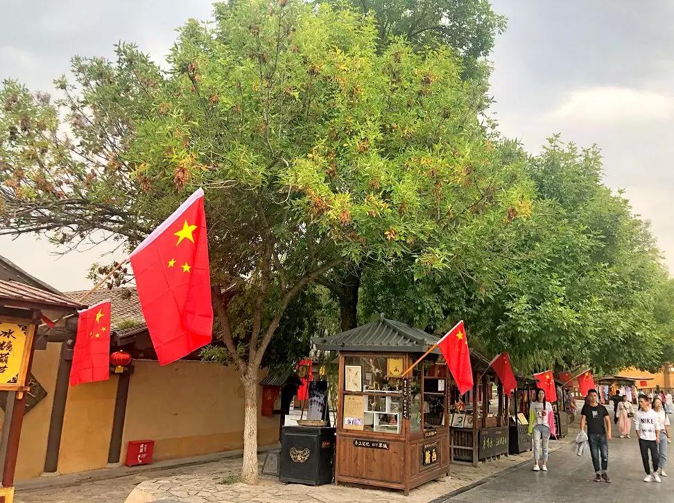 五星紅旗迎風(fēng)飄,金秋十月歌如潮。今年是中華人民共和國成立70周年,舉國歡騰。在這盛世的節(jié)日里,清明上河園內(nèi)各個商戶、門店都早早懸掛上了五星紅旗,成為一道亮麗的風(fēng)景線,讓人眼前一亮。