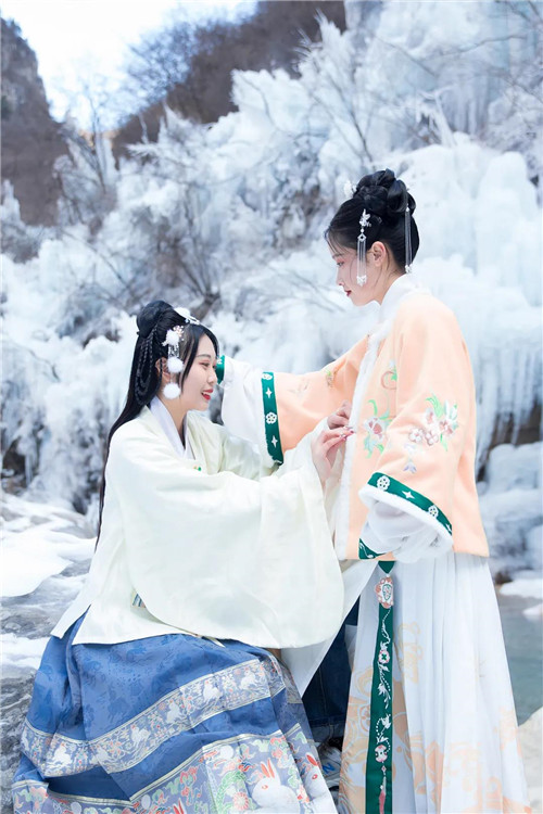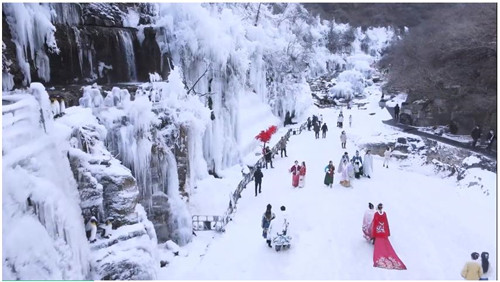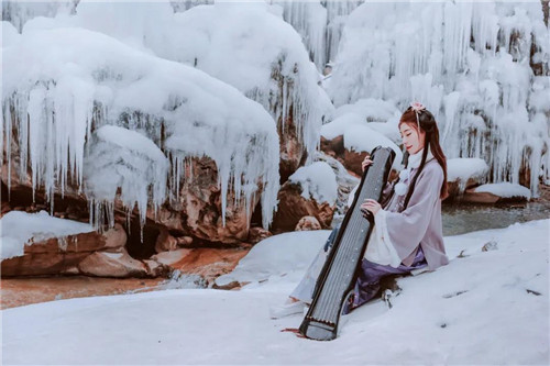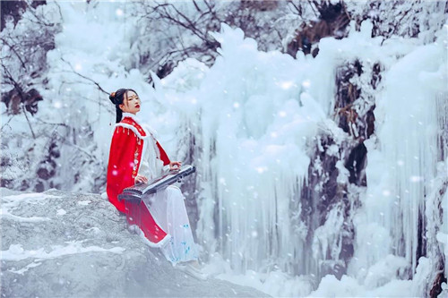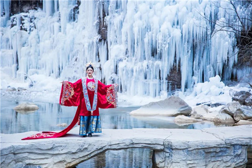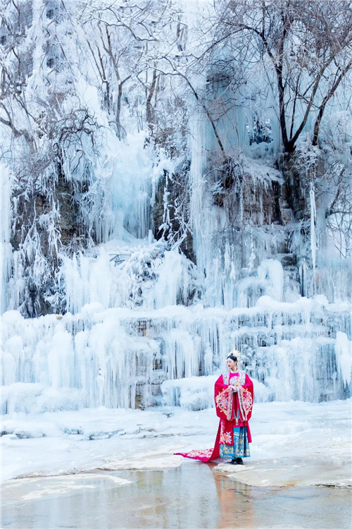 雪中有佳人,嬌容絕紅塵,一襲華服,衣袂飄飄,銀裝素裹的云臺(tái)山冰瀑群,與古韻繽紛的漢服 恰如一場(chǎng)浪漫的邂逅。