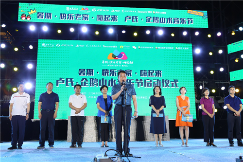 河南省文化和旅游廳扶貧辦主任師東坡宣布“暑期·快樂老家·嗨起來”盧氏·企鵝山水音樂節(jié)開幕。