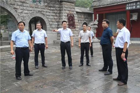 鶴壁市文化廣電和旅游局黨組書記裴文順(右二)在云夢山景區(qū)檢查指導(dǎo)質(zhì)量提升工作