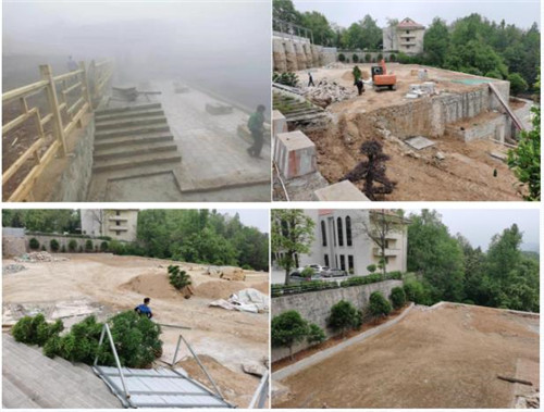 2、星湖廣場,砌臺階、護坡,地面鋪石材,回填土,移栽苗木,進行綠化。