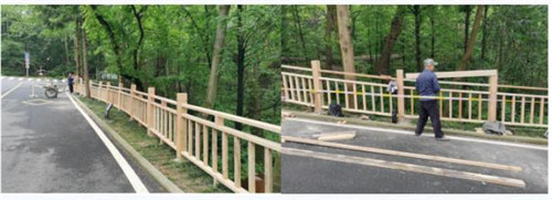 在星湖酒店門前路段,繼續(xù)安裝安全護欄。
