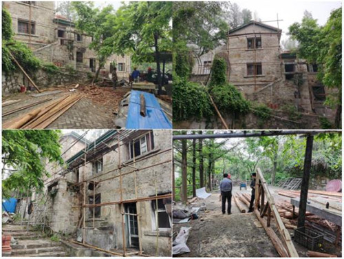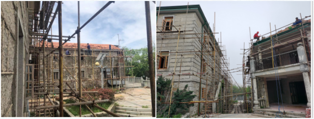 1、巡捕房(125別墅),檢瓦,上檁條、更換檁桿、瓦板。