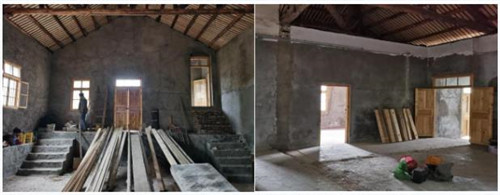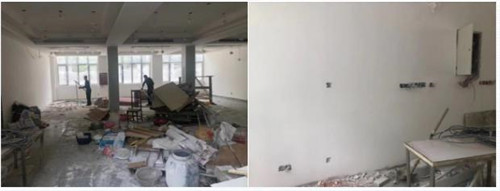 2、姊妹樓:屋面瓦檢修、木工制作門窗,更換檐板,室內(nèi)墻面批灰。