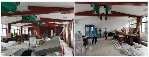 1、云中附屬樓,拆除餐廳舊吊頂、墻飾。