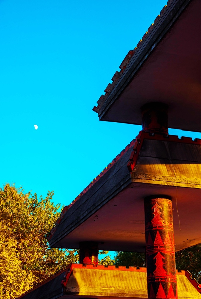 圖為日暮下的殷墟大門。 彭捷 攝