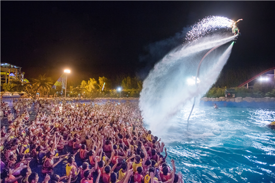 “水上飛人”運動被譽為當今世界四大最富創(chuàng)造力和潛力的運動之一,其趣味性、運動性、觀賞性總能帶給觀眾無限驚喜。7月1日起水上飛人表演正式開Show,蛟龍出海、凌空漫步等各種華麗動作令人眼花繚亂,目不暇接。