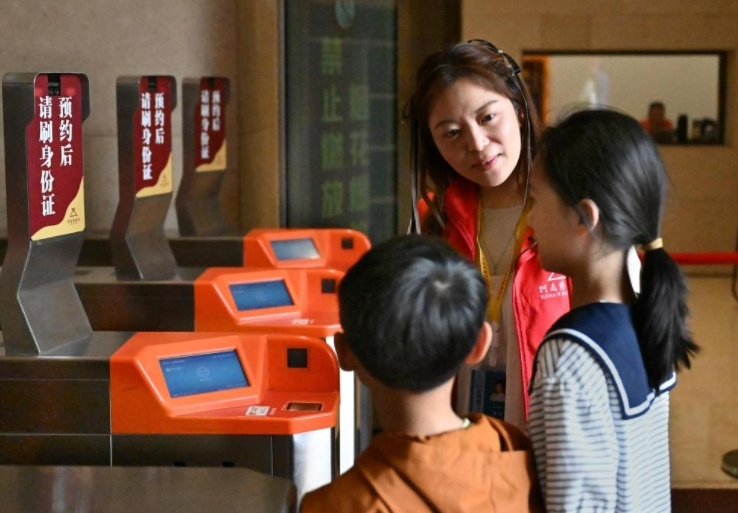 河南博物院志愿者楊萌為小朋友提供引導(dǎo)服務(wù) 李嘉南 攝