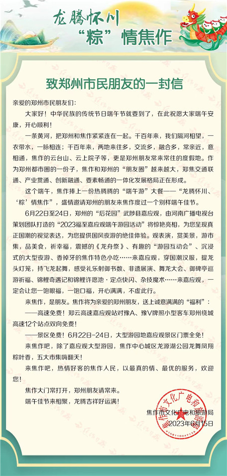 圍繞端午假期做足文章,焦作市主要景區(qū)、精品民宿也紛紛推出特色活動(dòng),為端午假期增色添彩。
